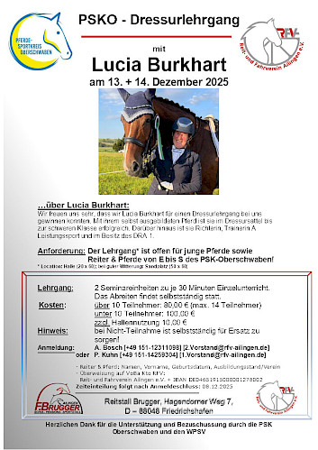 ???? Einladung zum PSKO-Dressurlehrgang mit Lucia Burkhart!