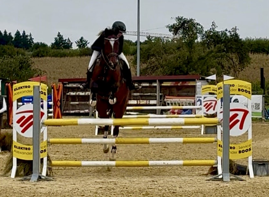 Johanna Maier mit Iron Man jumpt erfolgreich auf Platz 6 in der Stilspringprüfung Kl. A* mit Wertnote 7.9 in einer Zeit von 60.71s.