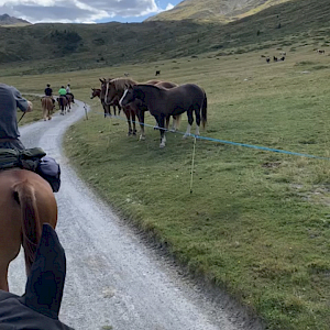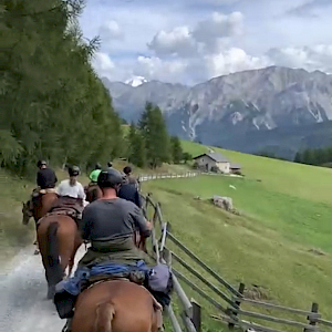 Fernab von allen Turnieren sind unsere beiden Wanderreiter Wolfgang Herling und Caro Heräus bei einem Pferdetrekking in Val Mora in der Schweiz unterwegs. Raus aus dem Alltag und hinein in den Sattel und in die beeindruckende Schweizer Landschaft. Insgesamt ist die Gruppe, bestehend aus mehreren Reitern, 3 Tage unterwegs. Bergauf und bergab geht es durch das Münstertal auf dem Rücken der trittsicheren und fleißigen Freibergerpferden. Zumindest kurzzeitig können Wolfgang und Caro in eine andere Welteintauchen und die schöne Landschaft auf sich wirken lassen. Einige der uns zugesandten Eindrücke möchten wir euch nicht vorenthalten. Vielleicht lässt sich ja der ein oder andere Reiter anstecken.