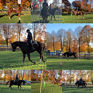Eine schöne Abwechslung zum aktuellen Corona-Geschehen durften unsere Vereinsmitglieder Petra Kuhn und Wolfgang Herling am vergangenen Wochenende bei den Reiterkollegen des RFV Pfullendorf „kennenlernen“! Auf der vereinseignen Anlage fand der „Trailkurs / Working Equitation“ mit Andrea Stoller statt. Bei tollem Herbstwetter mit typischem Flair, sprich „All-In“ – Regen, Sonne, Wind und jede Menge Wetter – ging’s los in Zweiergruppen. Nach dem Aufwärmen hieß es „ran an die Halloween-Hindernisse“! Kürbis, Totenkopf und Hexe luden ein zu tollen Herausforderungen: die Anlage bot tolle Möglichkeiten und vielfältige Hindernisse, so daß für alle etwas dabei war. Der Spaßfaktor stand natürlich primär im Vordergrund - aber, Black Lady Maifee entpuppte sich zur Begeisterung der erfolgreichen Working Equitation-Coach Alex zum echten Hight Potential. Nicht nur, dass sie die Aufgabenstellung bei herausfordenden Bodenverhältnissen mit Bravour meisterte, spätestens am Tag 2 war sie ready-for-competition! Von daher war der Einsatz für unsere Vereinsmitglieder Petra und Wolfgang mit ihren Pferden Maifee und Roy- der erste Abstecher in die Disziplin der Working Equitation - mit Sicherheit nicht der letzte. Vom – auf den ersten Blick – einfachen Anreiten der einzelnen Hindernisse bzw. Aufgaben, erab sich die Herausforderung aus der Umsetzung bzw. dem Detail. Vorwärts rein – easy – aber dann alles wieder rückwärts raus – alles andere als easy!