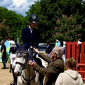 Sonntagmorgen in Weingarten wurde mit dem Reiterwettbewerb im Springen um 10 Uhr eingeläutet über eine Höhe von 55 cm. Mit am Start war unsere Lisa Saier,, die ihren Schimmelwallach Czartbitter gesattelt hatte und erfolgreich den etwas turbulenten, Abreiteplatz absolviert hatte. Die beiden gingen an eine erste Turnierrunde dieser Saison: der etwas anspruchsvolle Platz war eine Aufgabenstellung, die sie jedoch souverän meisterten. Wertnote 6,7 befanden die Richter. Am Ende für die beiden die erste Schleife 2024: wir gratulieren ganz herzlichst zu einem erfolgreichen 10. Platz. Weiter so!