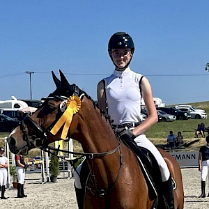 Auch unsere Mia Moll hatte ihre "Anne" - Two-to-Tango - aufgeladen, getrenst und gerichtet: für ihre erste Dressurprüfung der Kl A**! Die beiden gingen hochmotiviert ins Viereck und ließen sich vom Flair und Prestige nicht beeindrucken, saubere Runde. Die Richter werteten mit WN 6,6 - somit für die beiden zum Tagesauftakt direkt eine Platzierung im Siegerfeld: Platz 7! Wir gratulieren herzlichst.