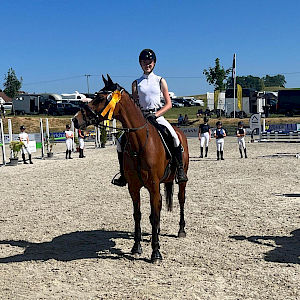 Und dass unsere Youngsters es "hot" mögen und dann mal so richtig Gas geben, zeigte unser sportliches Team am Nachmittag: in den Springwettbewerben gab es schier kein Halten mehr. Um 15 Uhr ging es los mit dem Springreiter-WB und da Horse Gym's Caramba unter Lisa schon warm gelaufen war, ideal vorbereitet sozusagen, zeigte sie mit Caramba und Karacho, was geht unter Laetitia Egger. Traumhafte Nullrunde durch den Parcours für die beiden, sensationelle WN von 8,5! Und damit Gold und nicht mehr zu schlagen. Was für ein super Erfolg!