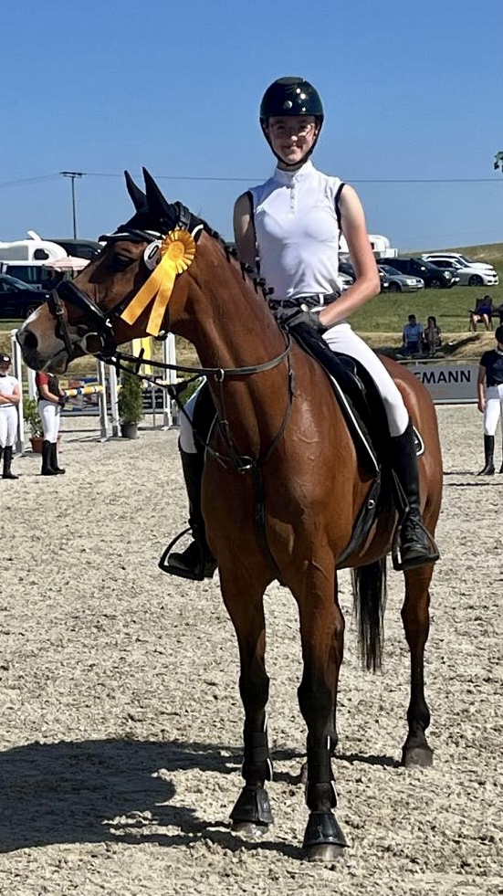 Unser frühester Vogel am Morgen waren natürlich das Team für den Dressursport. Gestartet wurde in Überlingen laut Planung direkt mit einem Dressurwettbewerb der Kl E. Geritten wurde die Aufgabe 5/1. Und unsere Grete Fritsch hatte wieder gesattelt und gerichtet: ihren wunderschönen Fuchs Quirinus. Die beiden lieferten in den frühen Morgenstunden eine rundum harmonische und gelungene Runde ab, die die Richter mit WN 6,7 bewerteten. Wunderbar - damit ging es direkt in die Platzierungen für die beiden: fantastischer Pl 4! Congratulations.