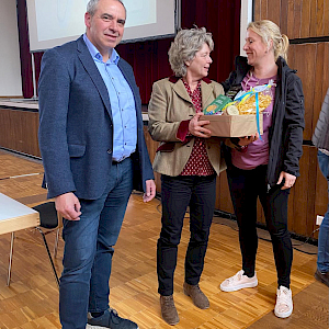 Als Wertschätzung überreichten sie ihr einen kulinarischen Gruß aus der Region, der bei Frau Herbster sichtlich Freude auslöste.