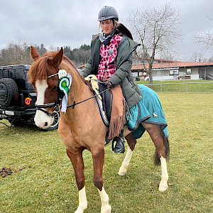 Freitagmittag 14.3.2025 und los geht's mit den Pferdeyoungsterprüfungen bei erstem klar winterlichen Drizzelregen-Wetter: aber unsere Emily Arnegger hatte aufgeladen und war mit ihrem Jungpferd Comme Balouna nach Moosbeuren angereist. Abreiten und getting ready machten die zwei wie alte Hasen und schon hieß es losstarten und ab in den Parcours. Springpferdeprüfung der Kl. A* mit Clear-Round-Modus über 90 cm stand bei den beiden auf der Agenda. Zielsetzung war eine saubere Runde mit schönen Wegen: das gelang hervorragend, denn in einer Zeit von 75,39s waren bei beiden fehlerfrei im Ziel, was ihnen in der stark umkämpften Prüfung einen hervorragenden 10. Platz bescherte. Das war schon mal ein super Auftakt!