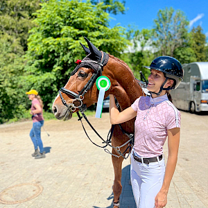 Jetzt wechseln wir kurz die Perspektive und fahren zusammen mit Lina Gaye am 15.6. nach Rielasingen: dort hatte Lina für ihre Feldrose die Springprüfung mit steigenden Anforderungen Klasse A** über 105 cm gebucht. Die beiden hatten erfolgreich das Warm-Up absolviert und starteten in der Prüfung durch! Feldrose gefiel die Umgebung unter der Parcours: einwandfreie Runde mit Null!-Fehlern in einer Zeit von 47,89s - sensationell gut - und in einem sehr ambitionierten Starterfeld katapultierte sie dieses Ergebnis direkt auf dem 5. Platz. Wir gratulieren, herzlichst!