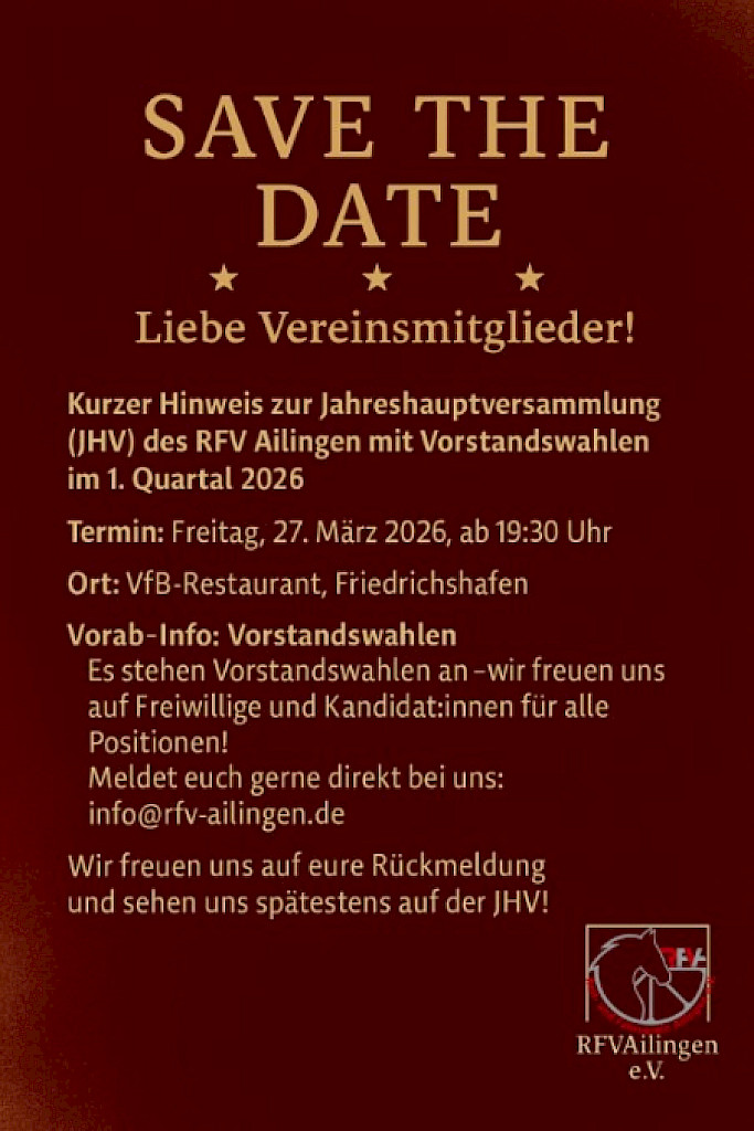 ✅ Save-the-Date: JHV des RFV Ailingen im 1. Quartal 2026 am Freitagabend, den 27. März 2026