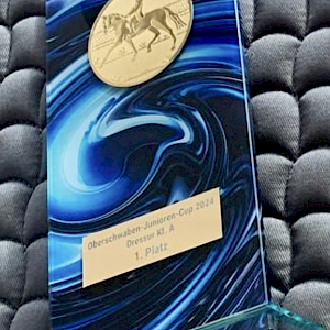 Hier hatte unsere Grete Fritsch schon früh morgens gerichtet und war losgedüst nach Herbertingen für die Dressurprüfung der Kl A**. Ihr Quirinus kannte das Turnierambiente bereits, und auch die weiße Pracht, sprich Schneeflockensegen schüchterte die beiden nicht ein. In einer sensationellen Runde platzierten sie sich auf direkt für Gold. So gut war dann einfach niemand mehr, d.h. das war ihnen auch nicht mehr wegzunehmen. Super Wertnote von 7,8! Das bescherte den beiden eben diesen ersten Platz, - Gold! Juchheee und wohlverdient.