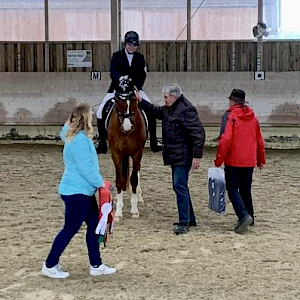 Danach waren die beiden schon viel „mehr Freund mit dem Viereck und den Wetterbedingungen“: erfolgreich ging es weiter und wurde dann - im Dressurwettbewerb 2 - am Ende ein erfolgreicher sechster Platz mit Wertnote 7,2.