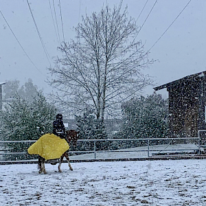 Der April, der macht was er will! … und das auch bei Wintereinbruch und Schneeflockentreiben. Dieses Wochenende fing schon am Freitag sehr turbulent an: Wetterkapriolen vom Feinsten. Da musste man schon den dicken Winterparka wieder aus der Kiste kramen und fit sein für Sturmböen, Regenguss und Schneefälle. Nichtsdestotrotz hat all das unsere Jugend nicht aufgehalten und sie sind angetreten fürs Reitsportturnier in Herbertingen mit der Qualifikation zum Oberschwaben-Jugend-Cup.