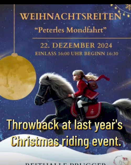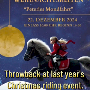 erinnert ihr euch noch an unser wunderbares Weihnachtsreiten im letzten Jahr? Zur Erinnerung haben wir euch eine kleine Video-Zusammenfassung angehängt – schaut gerne rein und lasst die schönen Momente noch einmal aufleben! ✨