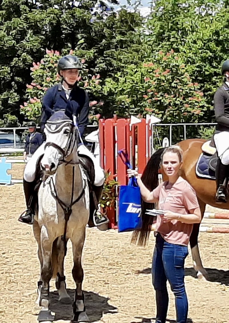 Sonntagmorgen in Weingarten wurde mit dem Reiterwettbewerb im Springen um 10 Uhr eingeläutet über eine Höhe von 55 cm. Mit am Start war unsere Lisa Saier,, die ihren Schimmelwallach Czartbitter gesattelt hatte und erfolgreich den etwas turbulenten, Abreiteplatz absolviert hatte. Die beiden gingen an eine erste Turnierrunde dieser Saison: der etwas anspruchsvolle Platz war eine Aufgabenstellung, die sie jedoch souverän meisterten. Wertnote 6,7 befanden die Richter. Am Ende für die beiden die erste Schleife 2024: wir gratulieren ganz herzlichst zu einem erfolgreichen 10. Platz. Weiter so!