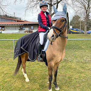 Freitagmittag 14.3.2025 und los geht's mit den Pferdeyoungsterprüfungen bei erstem klar winterlichen Drizzelregen-Wetter: aber unsere Emily Arnegger hatte aufgeladen und war mit ihrem Jungpferd Comme Balouna nach Moosbeuren angereist. Abreiten und getting ready machten die zwei wie alte Hasen und schon hieß es losstarten und ab in den Parcours. Springpferdeprüfung der Kl. A* mit Clear-Round-Modus über 90 cm stand bei den beiden auf der Agenda. Zielsetzung war eine saubere Runde mit schönen Wegen: das gelang hervorragend, denn in einer Zeit von 75,39s waren bei beiden fehlerfrei im Ziel, was ihnen in der stark umkämpften Prüfung einen hervorragenden 10. Platz bescherte. Das war schon mal ein super Auftakt!