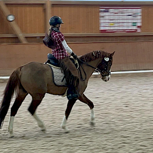 Und am Samstag, den 15.3. hieß es für die beiden nochmals antreten: um 10:30 Uhr läutete die Glocke erneut für die Amateurspringpferdeprüfung Kl A* mit Clear-Round-Modus über 90 cm. Erneut dabei und gut angeritten standen am Start unsere Emily Arnegger mit ihem Youngster. Und erneut gelang der Coup, nämlich fehlerfrei auf einen großartigen Platz 6 in einer sensationellen Zeit von 71s auf Comme Balouna zu galoppieren. Tolles Ergebnis für die beiden Turniertage beim neuen Team! Gratulation.