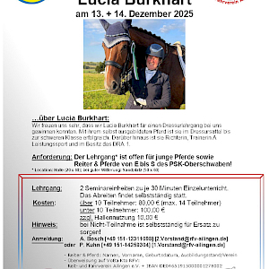 PSKO-Dressurlehrgang mit Lucia Burkart am 13.+14.12.2025 in Ailingen: einfach ein gelungener Lehrgang! ...