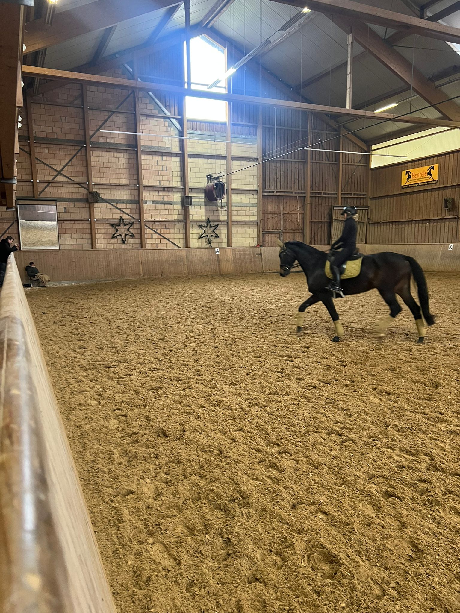 Merci für die tolle Halle (20x60) gebührt Eva-Marie Brugger und Team Pensionsstall Brugger, diese bot natürlich perfekte Bedingungen für konzentriertes Arbeiten. Merci an alle Pensionseinsteller, die Rücksicht nahmen.