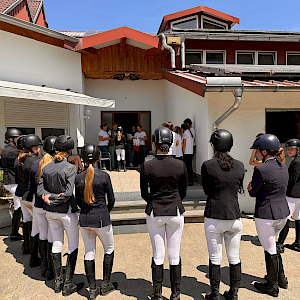 Am 11. Juni 2025 fand bei strahlendem Sonnenschein und einfach brillant im Sommerwetter und Reitabzeichen-Prüfungstag in Ailingen statt. Gestartet wurde mit den Aufgaben für den Pferdeführerschein Umgang. Dem folgten Springen und Dressur für die RA5 und RA4 sowie die theoretische beziehungsweise mündliche Prüfung. Gegen 13:00 Uhr hat es dann alle Teilnehmerinnen geschafft.