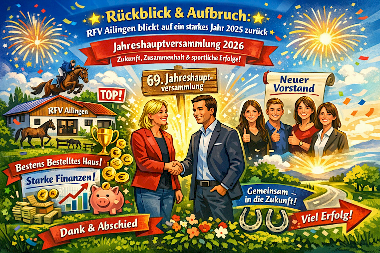 Die 69. Jahreshauptversammlung des Reit‑ und Fahrvereins Ailingen e.V. am Freitagabend den 27. März 2026 war weit mehr als ein formaler Pflichttermin – sie war ein Abend des Rückblicks, des Dankes und vor allem des Aufbruchs. Im VFB‑Restaurant Friedrichshafen wurde deutlich: Der RFV Ailingen steht auf starken Beinen – organisatorisch, sportlich und finanziell.