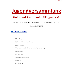Am 20. März 2026 fand die diesjährige Jugendversammlung des RFVA statt. Zahlreiche Jugendliche und Vereinsmitglieder kamen zusammen, um auf ein aktives Jahr zurückzublicken, wichtige Entscheidungen zu treffen und die Zukunft der Jugendabteilung zu gestalten.