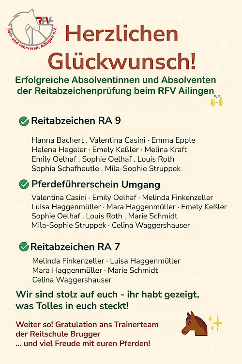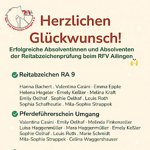 ✅ Herzlichen Glückwunsch! Erfolgreiche Absolventinnen und Absolventen der Abzeichenprüfung beim RFV Ailingen ✅