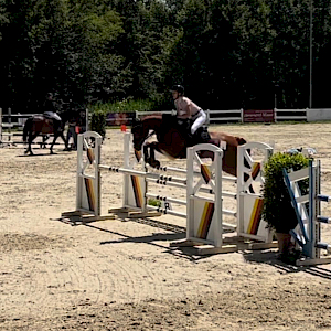 Schon morgens um 09:15 Uhr ging es für Julia & Bijou am Freitag den 14. Juni in die erste Prüfung: eine Springprüfung der Klasse M* Amateur Tour über 120 cm. Ihre smarte Stute Bijou machte ihrem Namen alle Ehre und erwies sich als echtes Juwel: sie katapultierte das Jumping-Team mit einem großartigen Ergebnis von Nullfehler in der Runde und einer Topzeit von 58,67s direkt auf den 9. Platz der 2. Abteilung im ambitionierten Starterfeld. Herzlichen Glückwunsch!