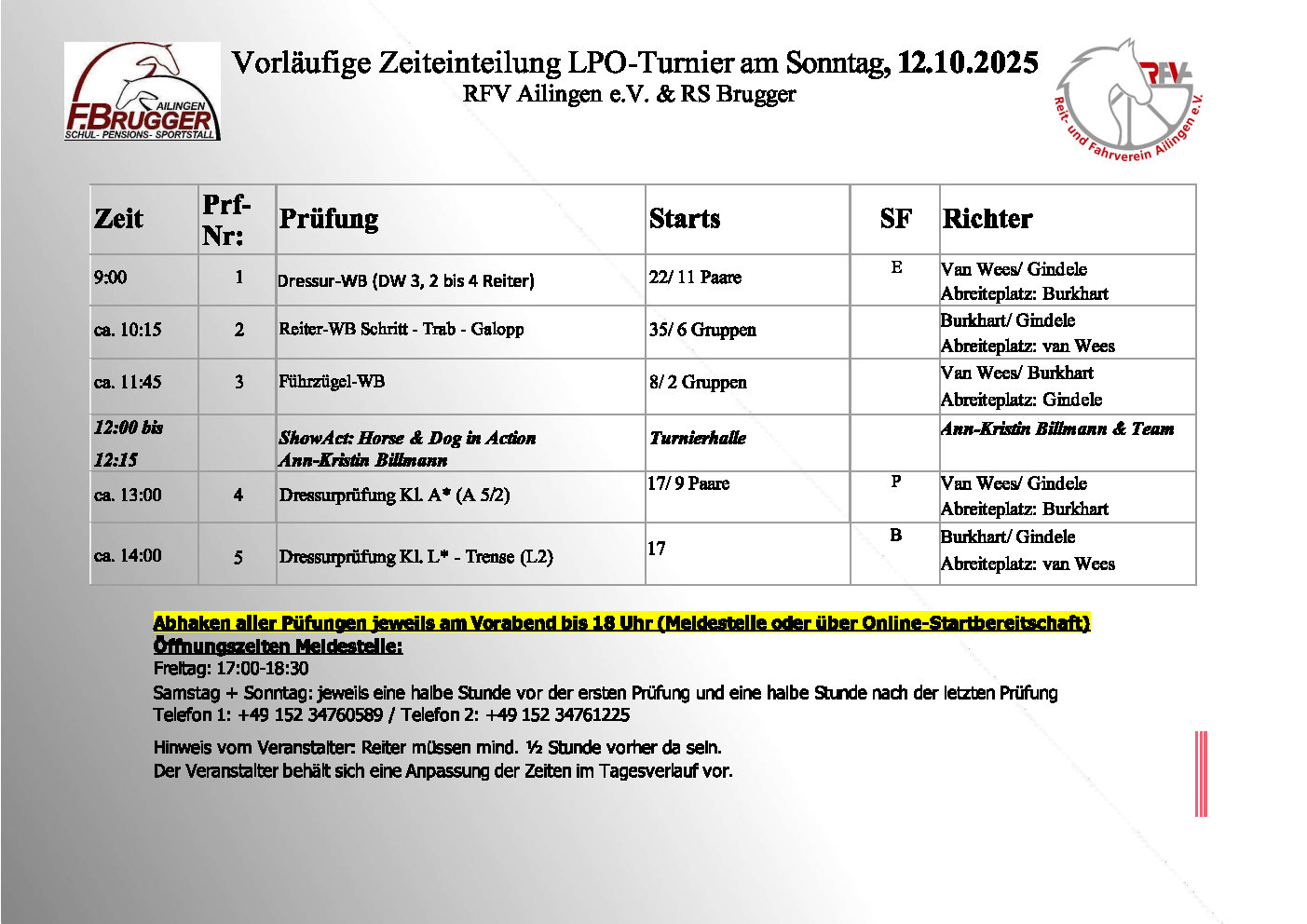 Turnier im Countdown - wir informieren: ... Zeiteinteilung - Parken in & um Ailingen!
